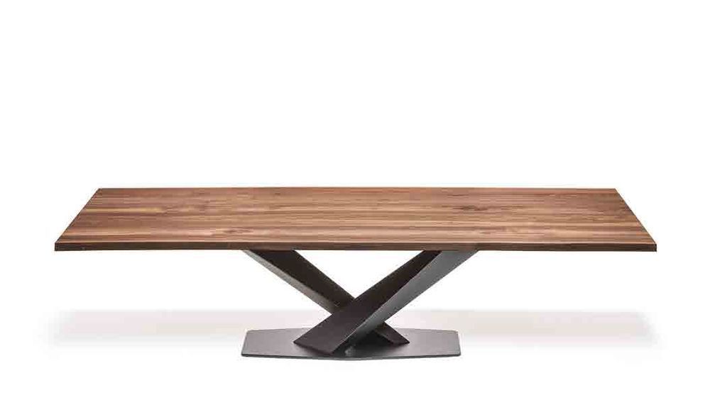 Стол с базой из стали, окрашенной в гофрированный титан (GFM11), черный (GFM73)или графитовый (GFM69) цвет. Версия S с неровными краями из массива ореха Canaletto (NC), обоженного дуба (RB) или натурального дуба (RN). Версия "A" (special): топ со скошенными краями в орехе Canaletto (NC), дубе Heritage (HR) или натуральном дубе (RN), размер топа 200x100 имеет толщину 4 см, версия 240x120 и 300x120 - 5 см. Версия "B" (special): топ со скошенными краями в орехе Canaletto (NC) или обоженном дубе (RB). Нестандартные размеры топа по запросу.