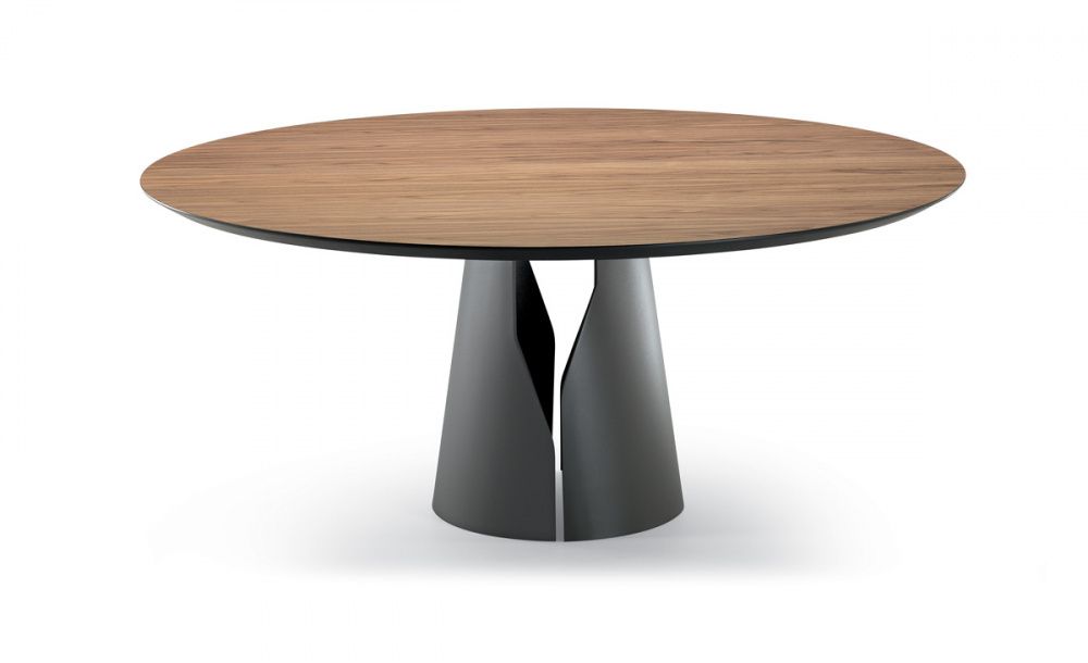 Стол с базой из стали, окрашенной в белый (GFM71), черный (GFM73) или графитовый (GFM69) цвет. Столешница из ореха (NC), обоженного дуба (RB) или белого матового мрамора Carrara (BCO). Дополнительно возможен заказ менажницы Lazy Susan.