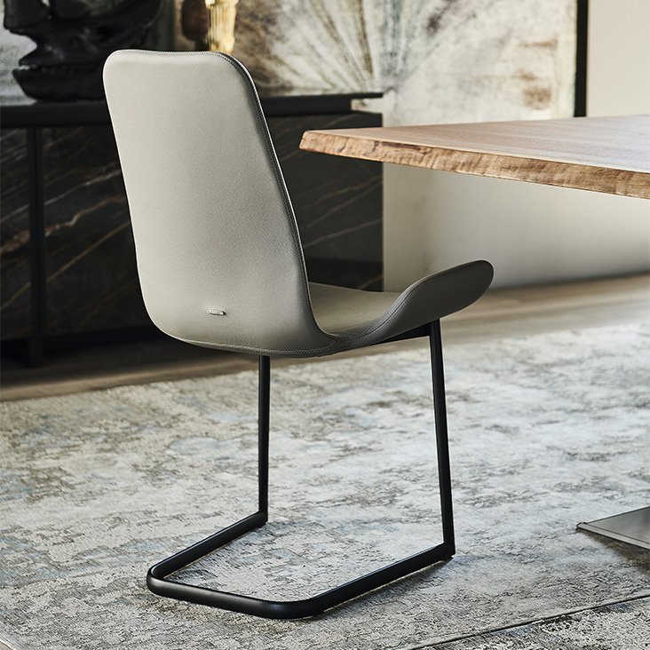 Стул на полозьях со структурой из стали, окрашенной в гофрированный титан (GFM11), графит (GFM69), белый (GFM71) или черный (GFM73). Обивка из ткани, синтетическом или микронубуке, натуральной или искусственной коже цвета согласно образцам. Чехол несъемный.
