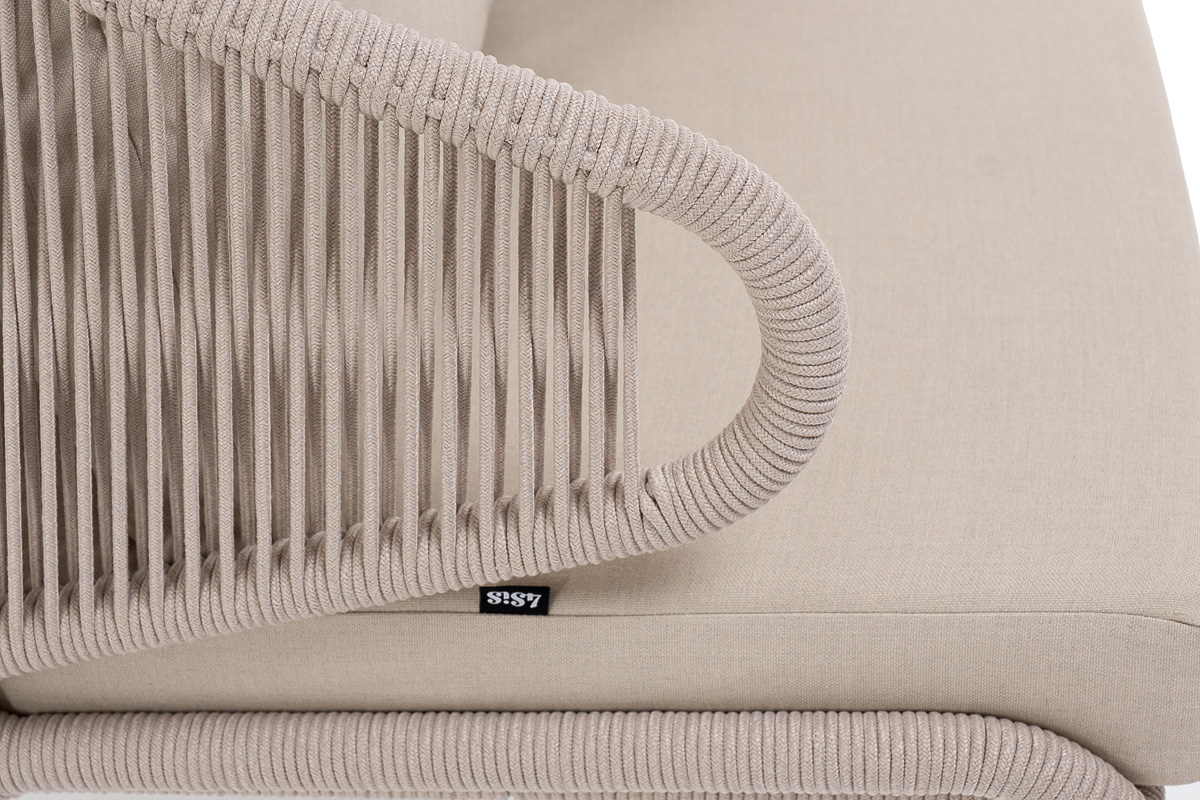 "Милан" кресло плетеное из роупа, каркас алюминий белый муар, роуп бежевый круглый, ткань бежевая 035