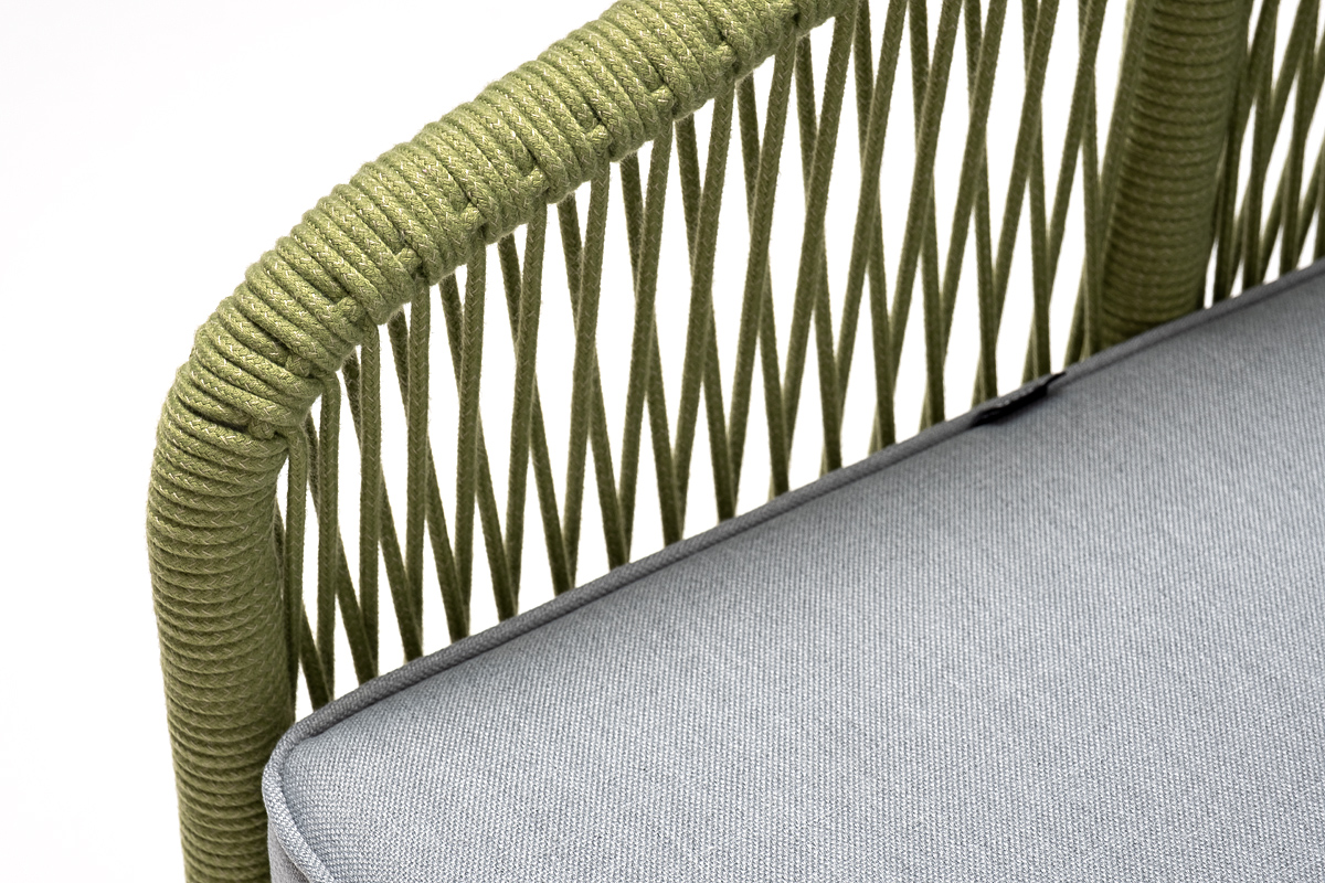 "Канны" кресло плетеное из роупа, каркас алюминий светло-серый (RAL7035) муар, роуп салатовый меланж круглый, ткань светло-серая