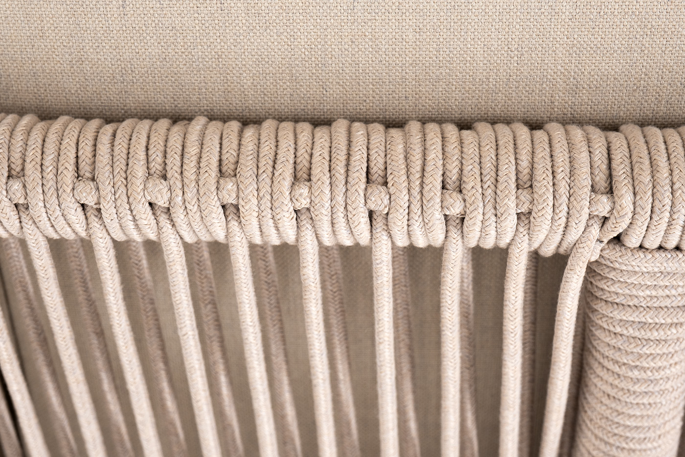 Боковины каркаса вручную оплетены роупом - эластичными синтетическими лентами, изготовленными из высокопрочных полиэфирных волокон. Цвет оплетки - бежевый. Основание дуб.