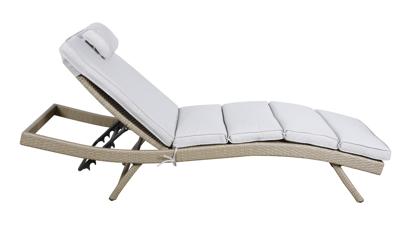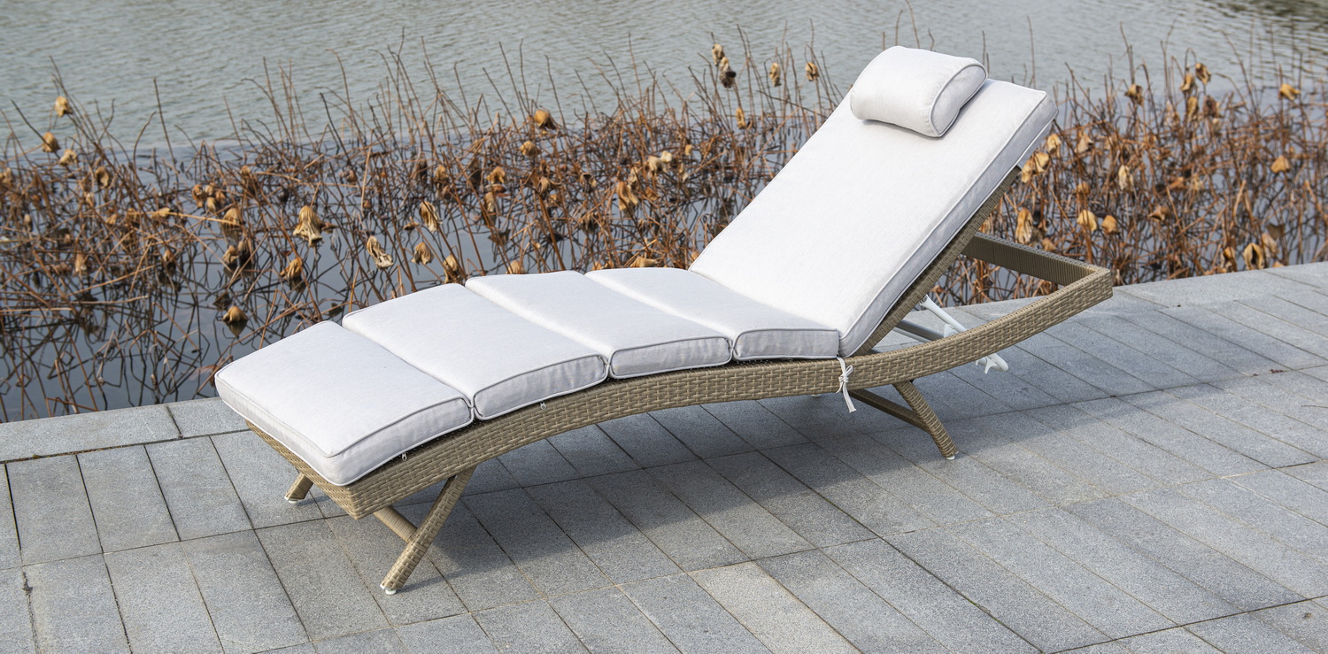 В комплекте прилагается матрас светло-серого цвета из водостойкой ткани.Мебель натуральных расцветок гармонично вписывается на пляже, в саду, на террасе.